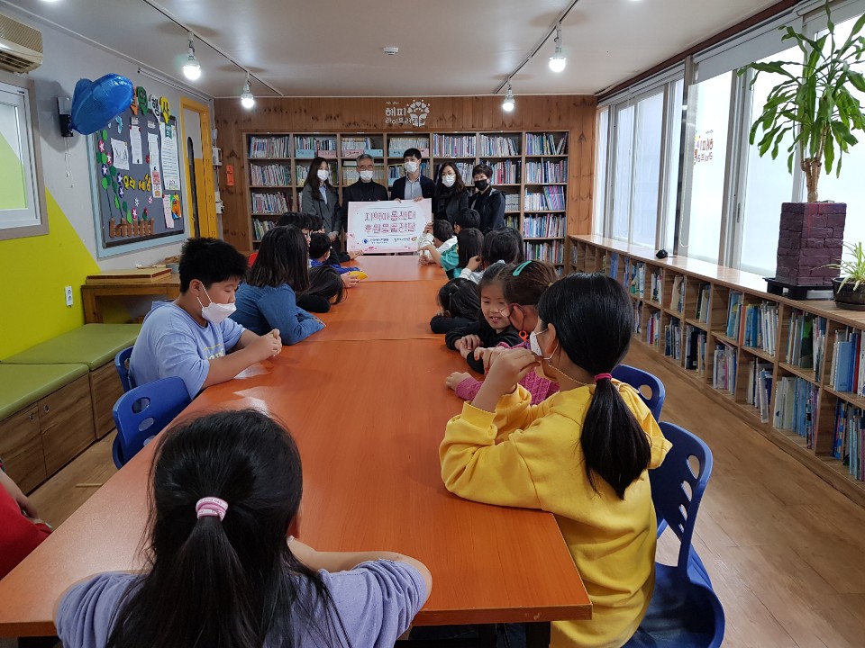 지역아동센터에 교육물품, 간식 등을 제공하고
