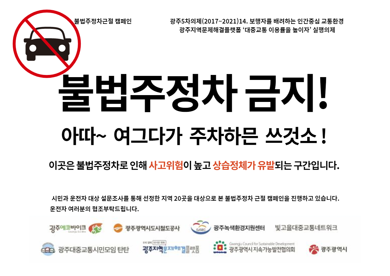 ○ 불법 주·정차 없는 도로는 시민 다수의 공감대 확보를 위한 캠페인 활동 매월 첫 주 월요일 오후5시 진행